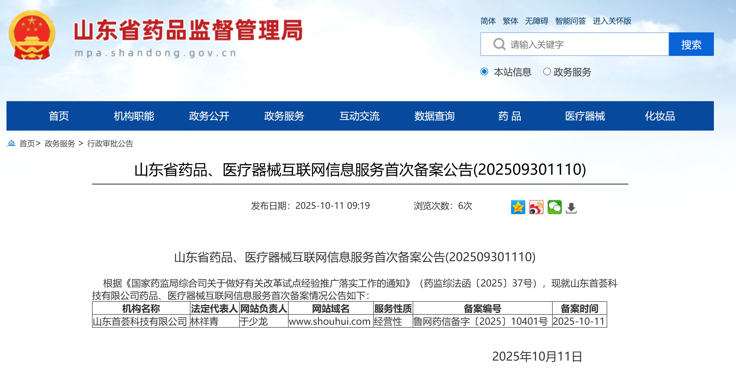 山东省药品、医疗器械互联网信息服务备案